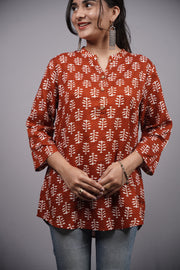 Rust Vriksha Handblock Cotton Short Kurti
