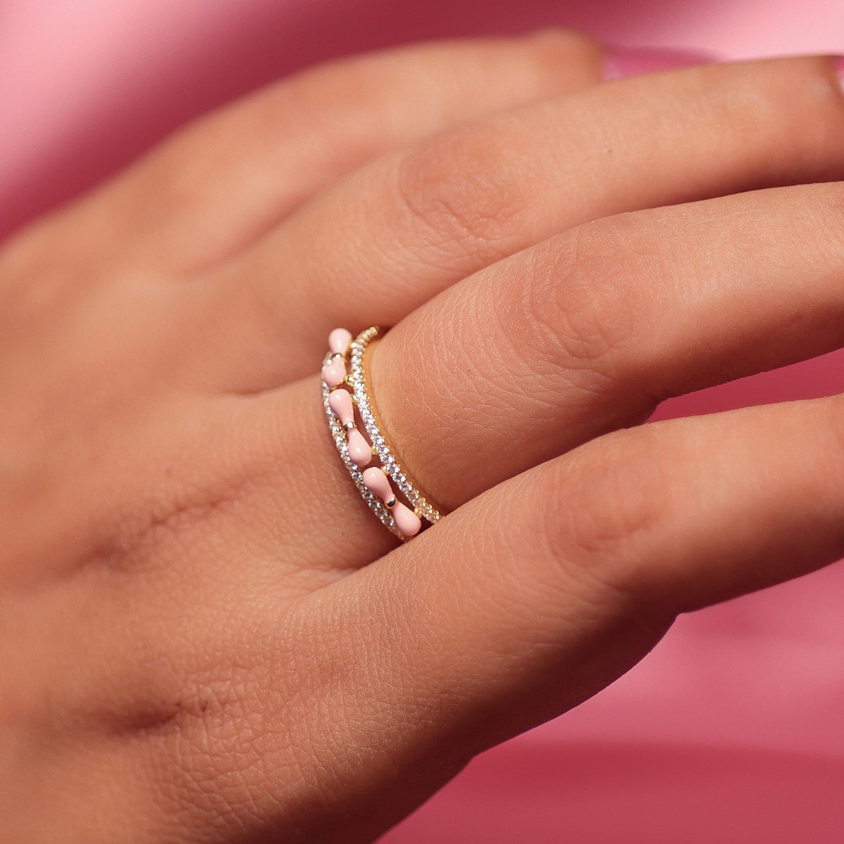 Material: Premium alloy with gold plating and pink beads in the middle elevating its presence.